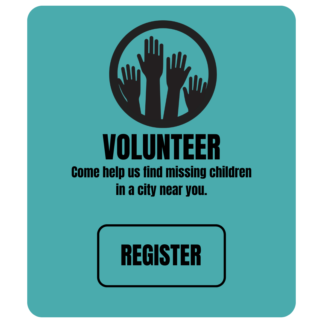 Sign up to volunteer to go out with our teams and canvas areas of Your City looking for missing children.